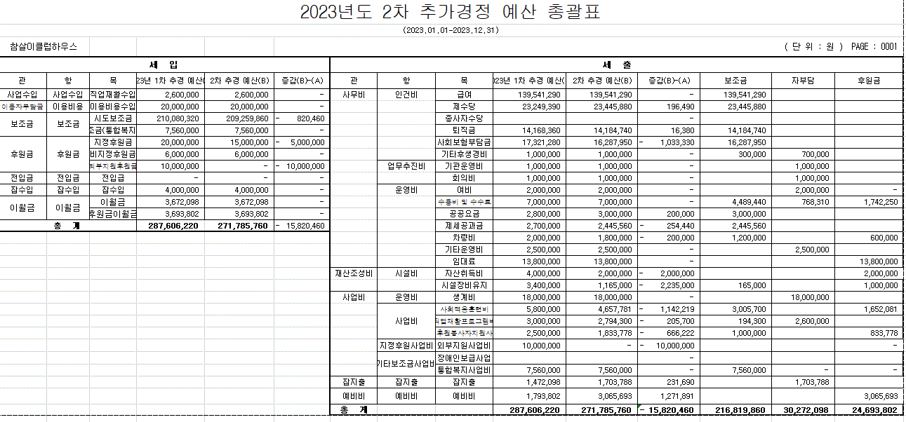 2023³âµµ 2Â÷Ãß°¡°æÁ¤ ¿¹»ê ÃѰýÇ¥